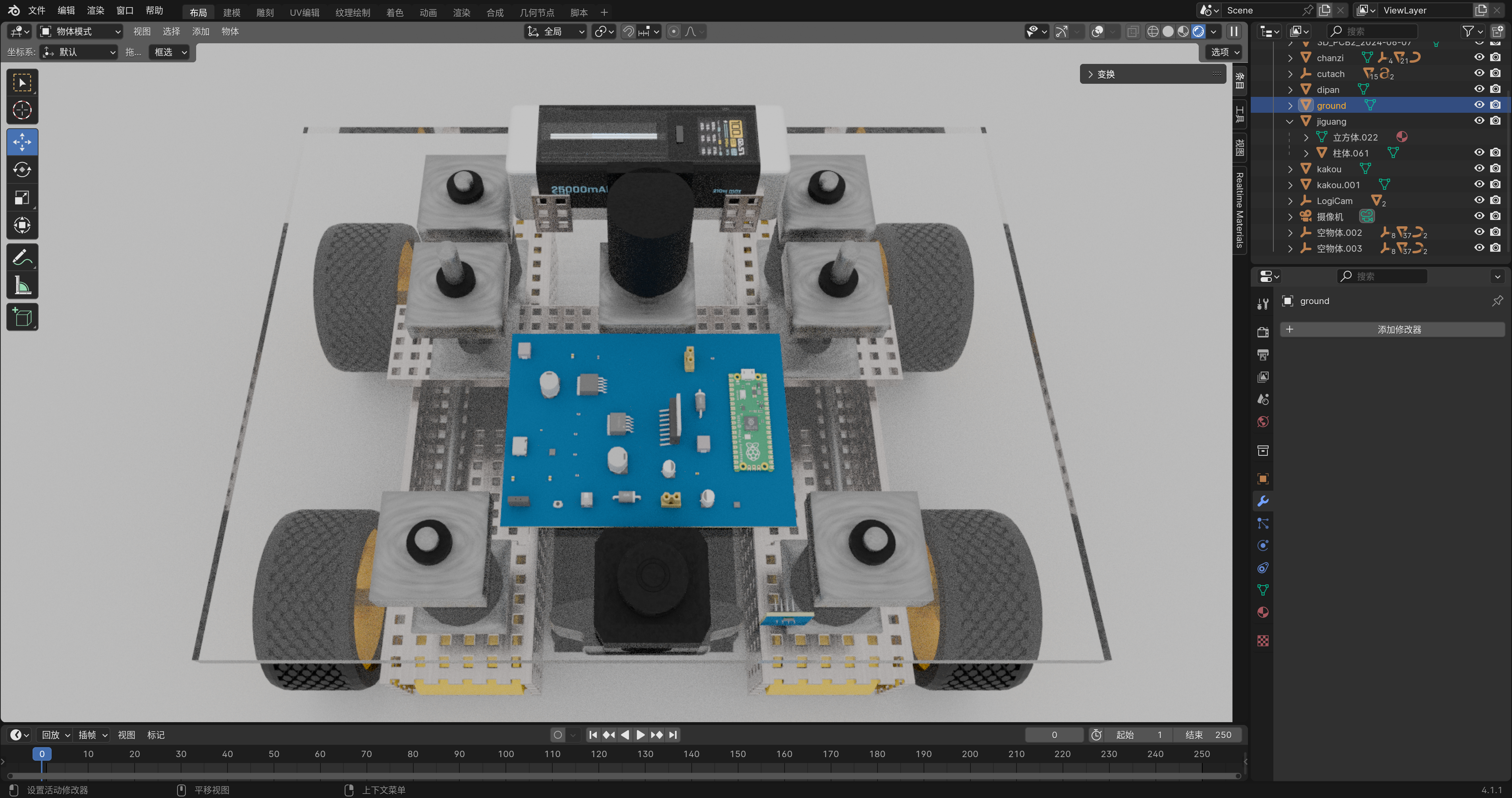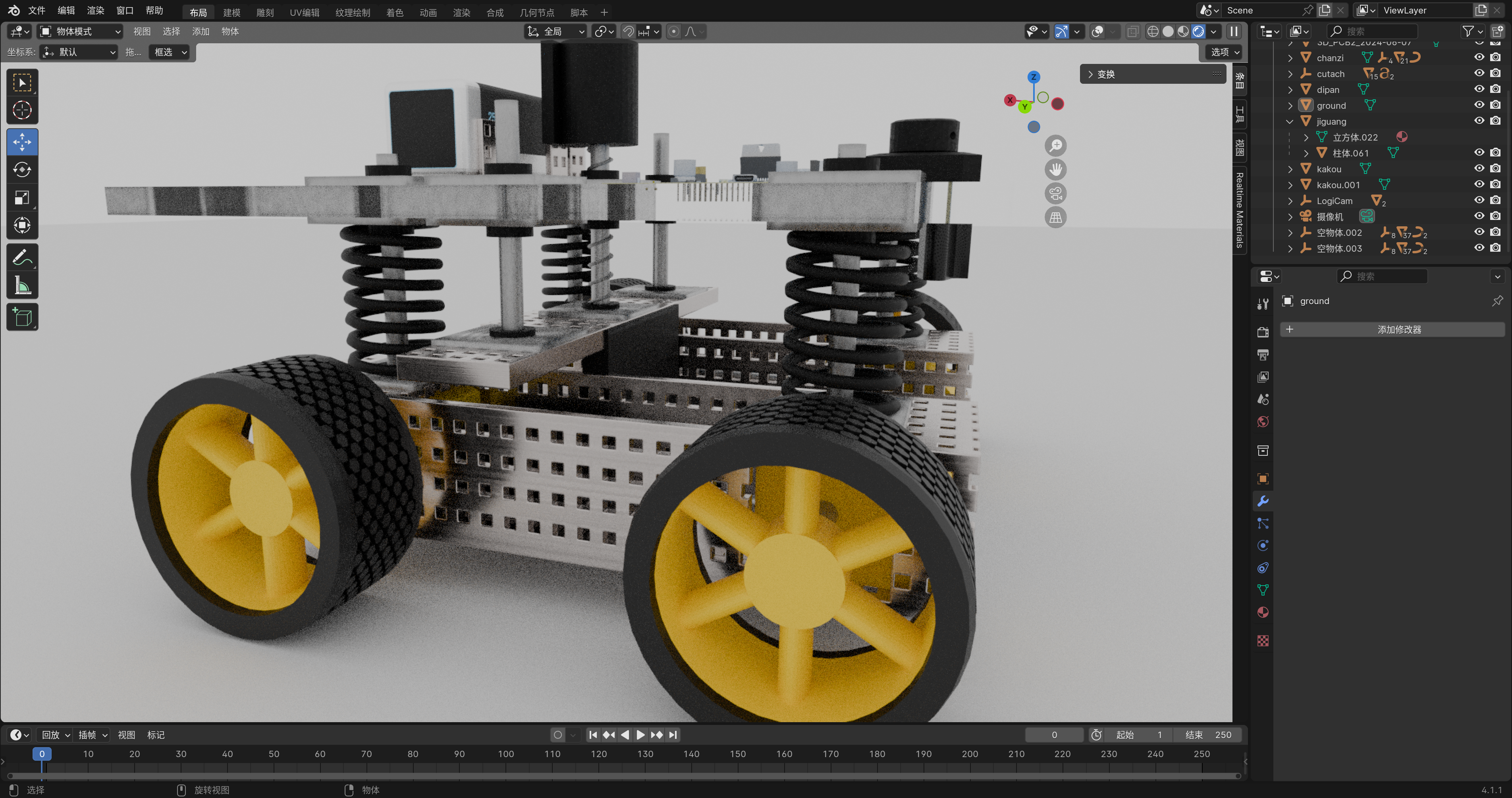 虚拟仿真系统使用Blender建模。Blender是一个开源的三维计算机图形软件,支持多种操作系统,可以用于建模、动画、渲染、视频编辑等多种用途。